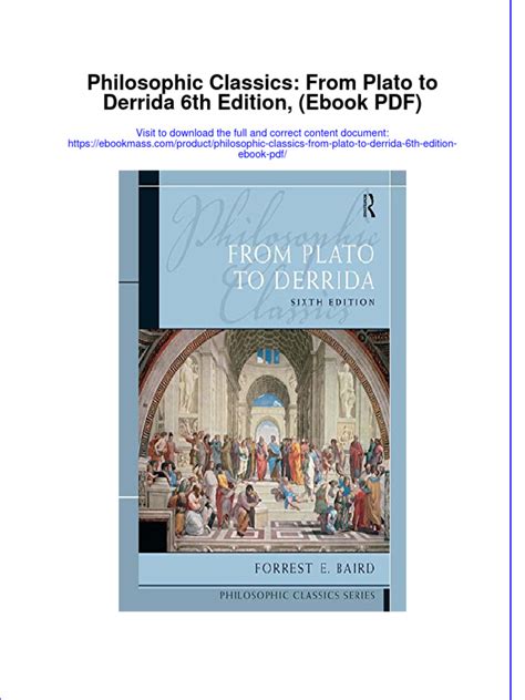 Download PHILOSOPHIC CLASSICS 6TH EDITION FROM PLATO TO DERRIDA PDF BOOK Epub By Click Button. PHILOSOPHIC CLASSICS 6TH EDITION FROM PLATO TO DERRIDA PDF BOOK it’s easy to recommend a new book category such as Novel, journal, comic, magazin, ect. You see it and you just know that the designer is also an author and understands the challenges involved with having a good book. You can easy klick for detailing book and you can read it online, even you can download it